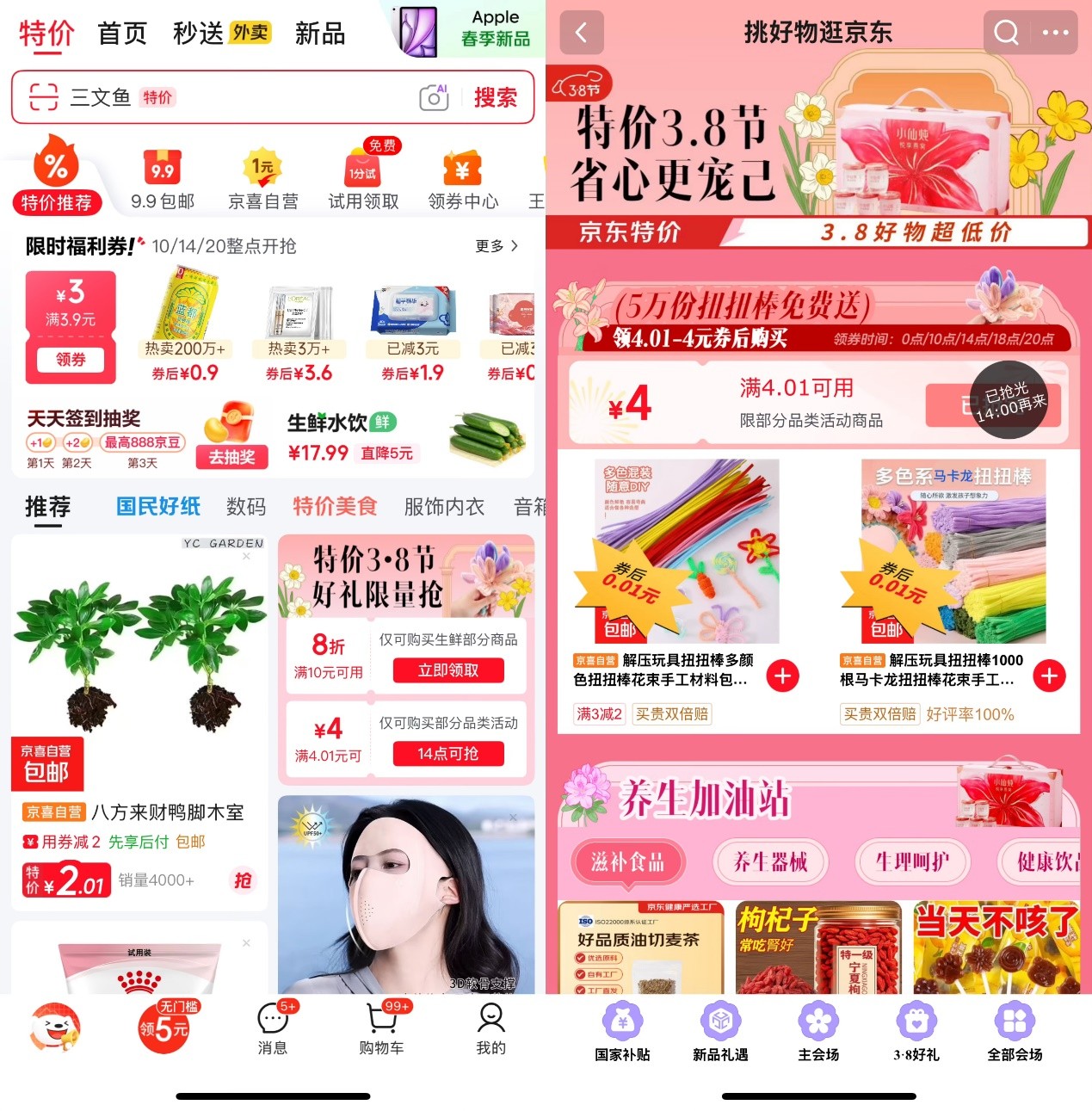 除了5万份扭扭棒0.01元购的专属福利,京东3.8节时间,京东特价频谈还同步上线多重惊喜。3月7日活动本日,频谈精选多款养生好物、好意思妆护肤、家居平缓类居品,以实惠价钱回馈奢华者,让公共能疏漏购入品性好物,犒劳我方,向家东谈主一又友传递情意。